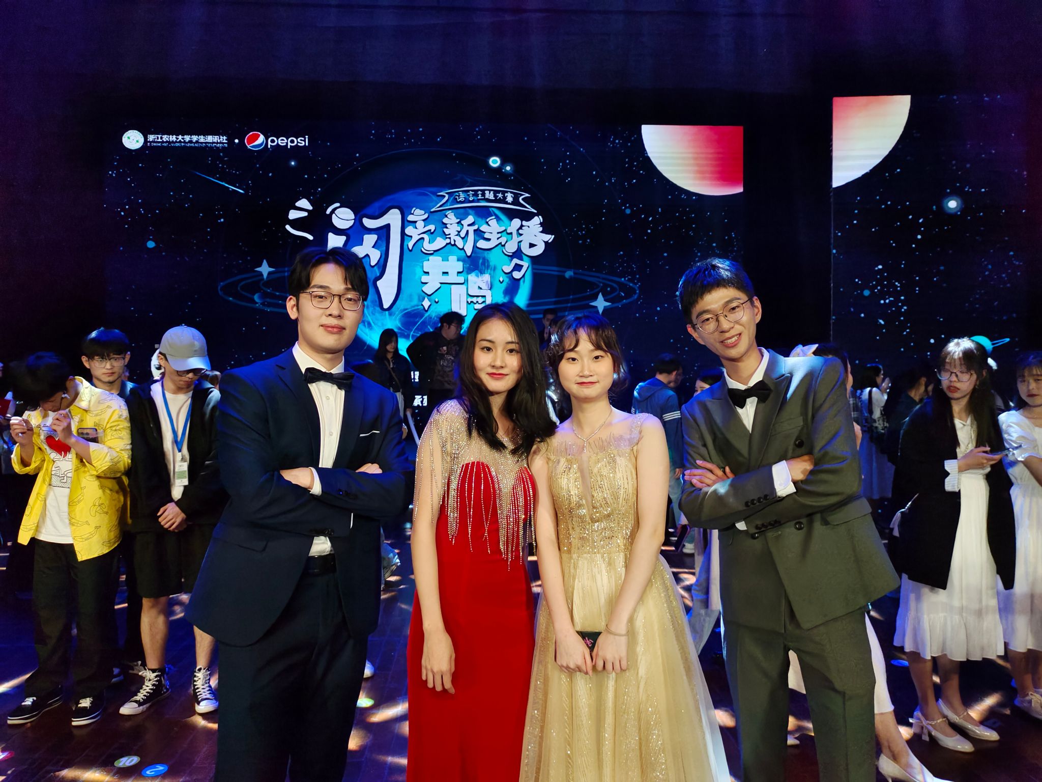 他曾是校學生通訊社廣播電臺的一名主播,參與約30次的“新聞直播間”播音工作,他的聲音曾響徹校園角落;他還參與了“閃亮新主播”語言主題大賽總決賽的主持工作,青澀的他第一次站在場下有數千人的舞臺,便迎來陣陣歡呼。第二學年,汪宇飛轉型成為一名文字工作者,擔任校學生通訊社記者團副團長。