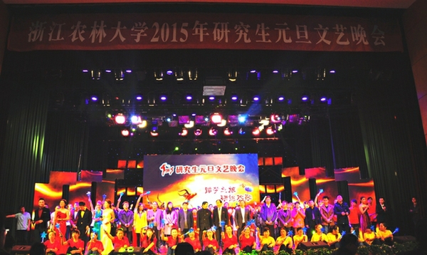 校長周國模,校黨委副書記方偉、余杰,副校長王自勇、張立欽、鮑濱福以及部分機關職能部門領導、學院黨政領導和研究生導師們出席了晚會。晚會還邀請到浙江中醫藥大學研工部的領導和研究生代表,浙江財經大學、浙江理工大學的研究生代表到場,與千余名師生歡聚一堂,共賀新年。