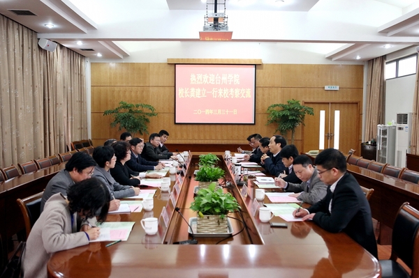 臺州學(xué)院副校長趙小明,以及校辦、科研處、計劃財務(wù)處、人文學(xué)院、經(jīng)貿(mào)管理學(xué)院、醫(yī)藥化工學(xué)院負(fù)責(zé)人參加考察。我校校辦、研究生處、創(chuàng)業(yè)處、計財處、科技處負(fù)責(zé)人參加交流。