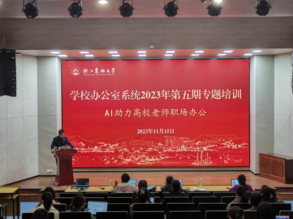 為進一步推進學校辦公室系統信息化建設,深入實施“卓越·出彩”素質提升工程,學校辦公室系統于11月15日舉辦了2023年第五期專題培訓會,旨在提高全校辦公室系統工作人員的綜合素質和業務能力。本次培訓邀請了秋葉集團AI專家講師哈雷來校授課,主題為“AI助力高校辦公室工作”。