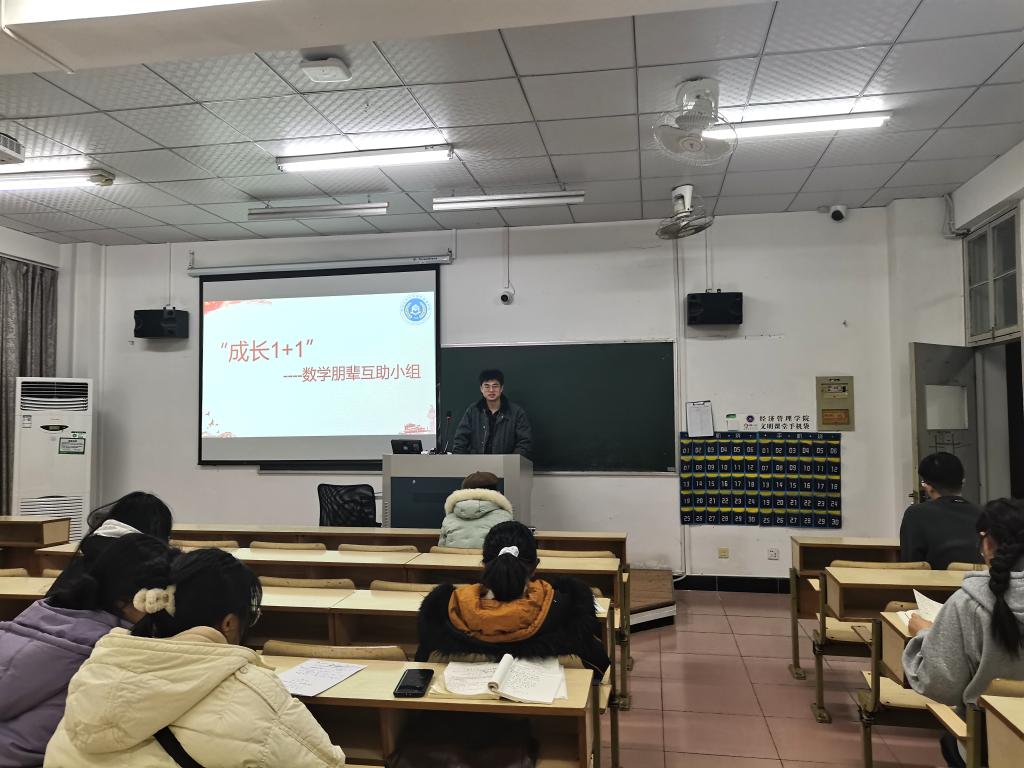 為了更好地營造學習氛圍,幫助新生解決學業難題,發揮大學生黨員朋輩幫扶共成長作用,1月8日,經濟管理學院開展“成長 1+1——數學朋輩互助小組”活動。