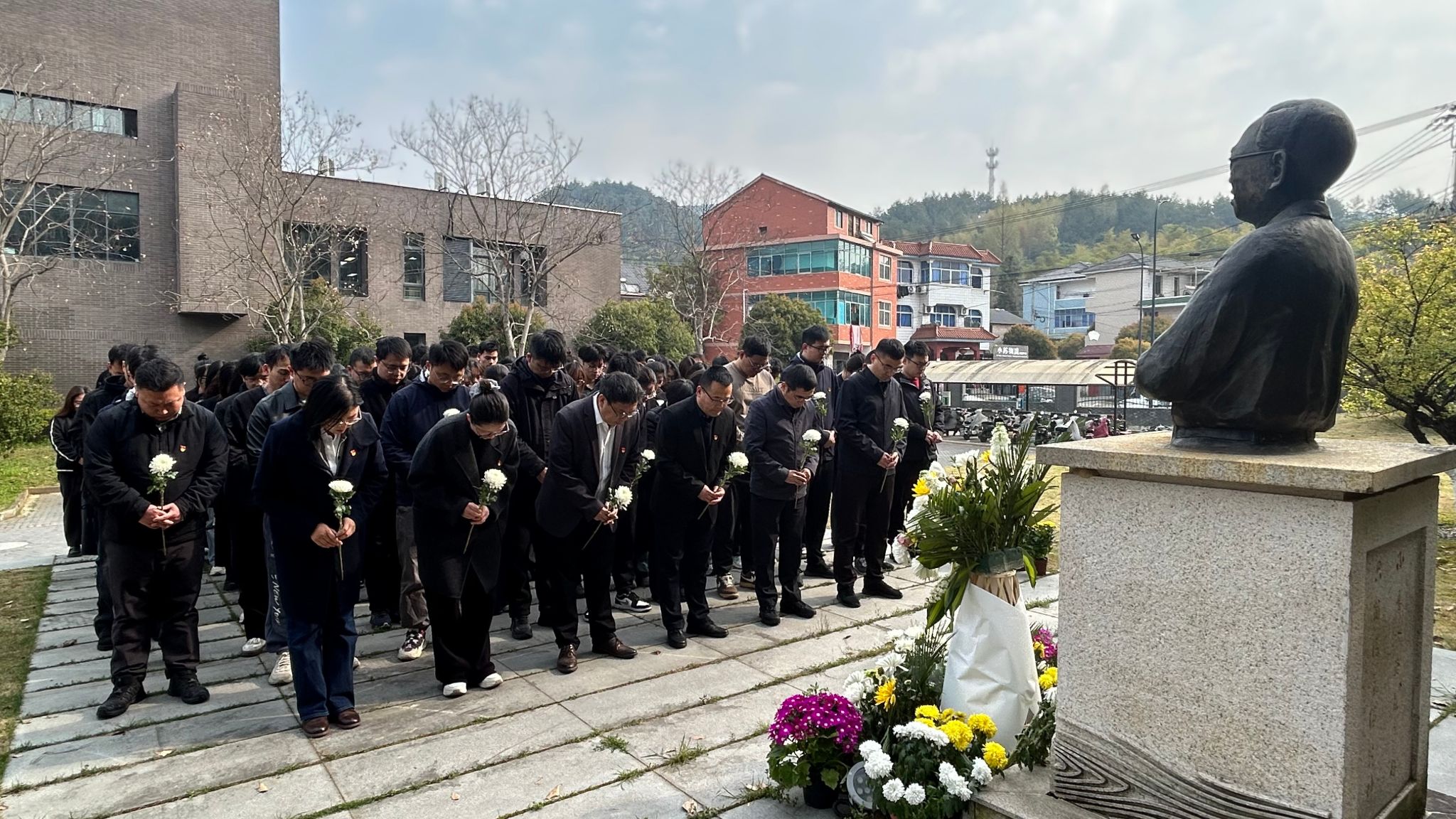 活動現場,全體人員手持素雅白菊,面向塑像靜默肅立。在追憶環節,林業工程研究生黨支部黨員李雨欣動情回憶張齊生院士生平事跡,從破解“以竹代木”的產業密碼,到構建現代竹材工業體系;從培育碩博英才的教育堅守,到筆耕不輟的師者仁心。張齊生院士用一生詮釋了教育家精神和科學家精神的豐富內容,激勵廣大師生砥礪奮進。