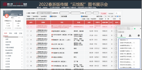d.為了增強采選人員交流體驗感,展會在線客服將為活躍在云端的采選人員提供優(yōu)質(zhì)服務,點擊出版社名稱即可在線咨詢。