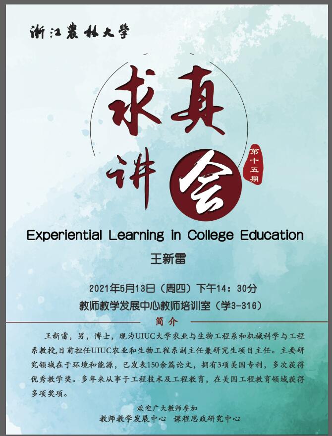 講座預告:“求真講會”第十五期:Experiential Learning in College Education